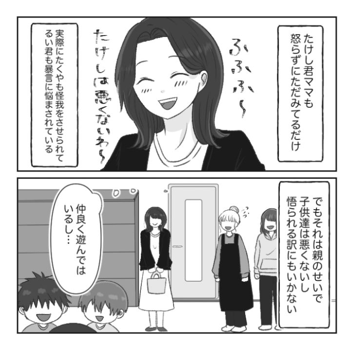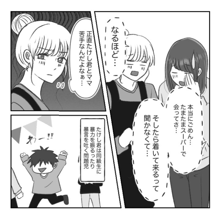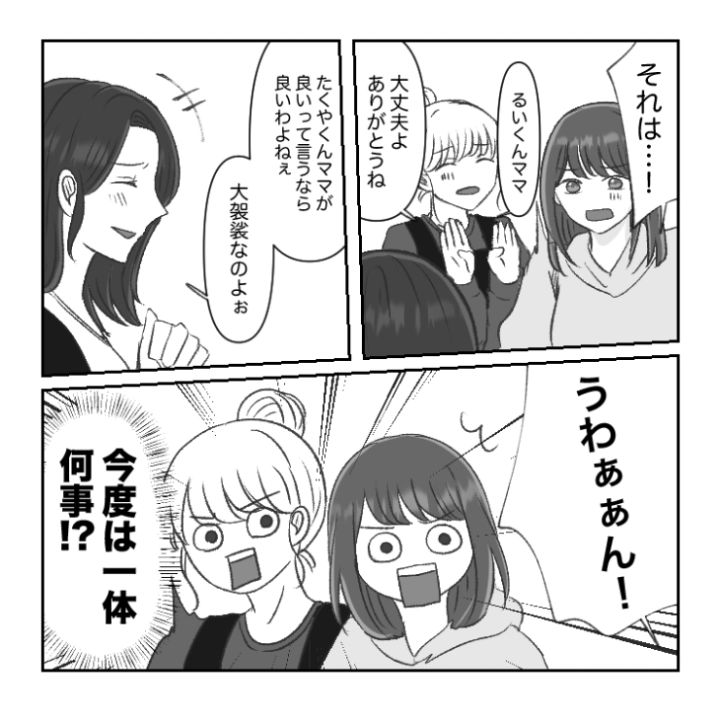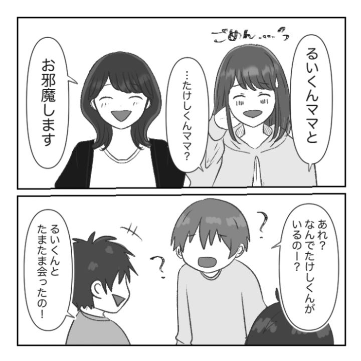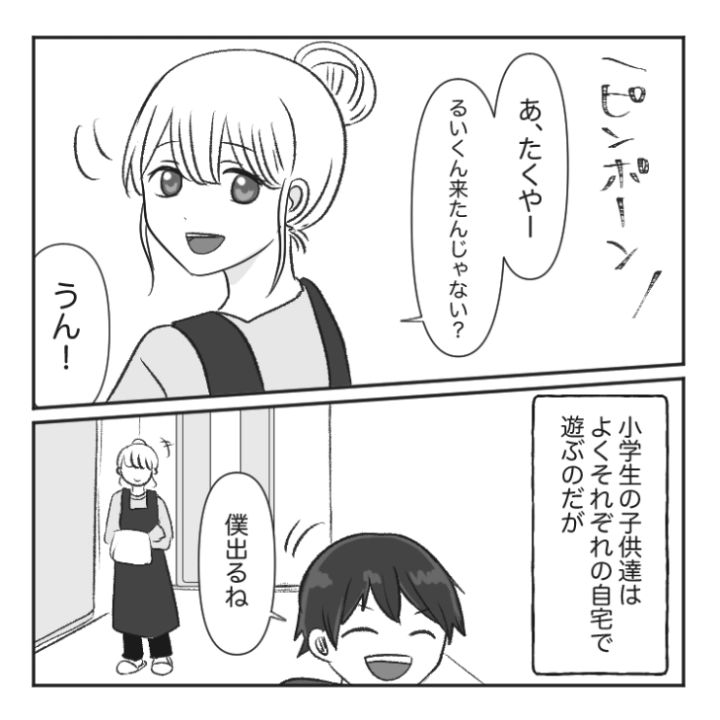 主人公の息子・たくやはこの日、自宅で友達のるいと一緒に遊ぶ約束をしていました。しかし、思わぬつれもやってきてしまうのでした・・・。