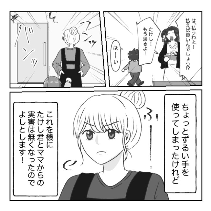 弁護士という言葉を出した瞬間に慌てて逃げ帰った迷惑親子。もう二度と同じようなことをしないでほしいと思う主人公でした。
