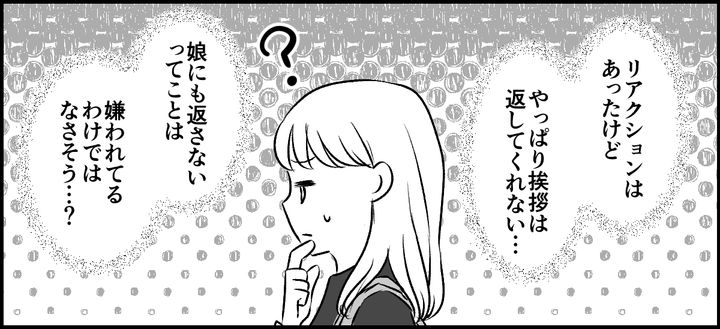 私は、私のことが嫌いだから挨拶を返してくれないのかと思い、娘にも挨拶をさせてみました。しかしリアクションはあったものの、やはり挨拶を返してはくれません。それ以外の私への態度を含めても、やはり義両親は「嫌いだから挨拶をしない」わけではなさそうなのですが……それにしても不思議です。