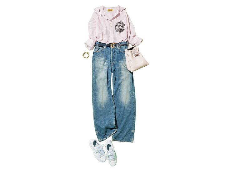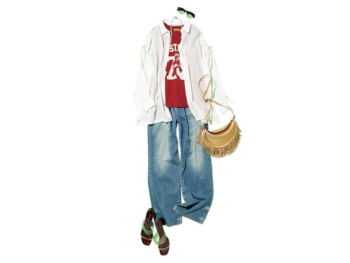 シャツ¥35,200(ヒステリックグラマー)バッグ¥51,700(ヴァジック/ヴァジックジャパン)スニーカー¥15,400(ナイキ スポーツウェア/NIKE カスタマーサービス)ベルト※参考価格¥30,800(アトリエ アンボワーズ/アマン)ブレスレット¥15,400(アビステ)