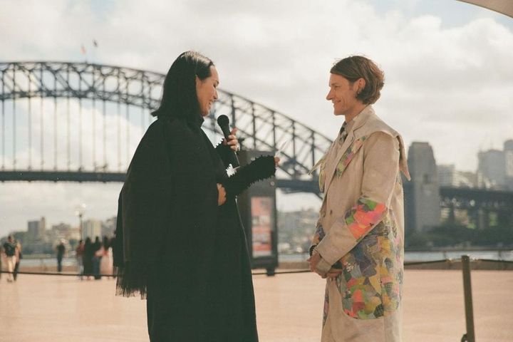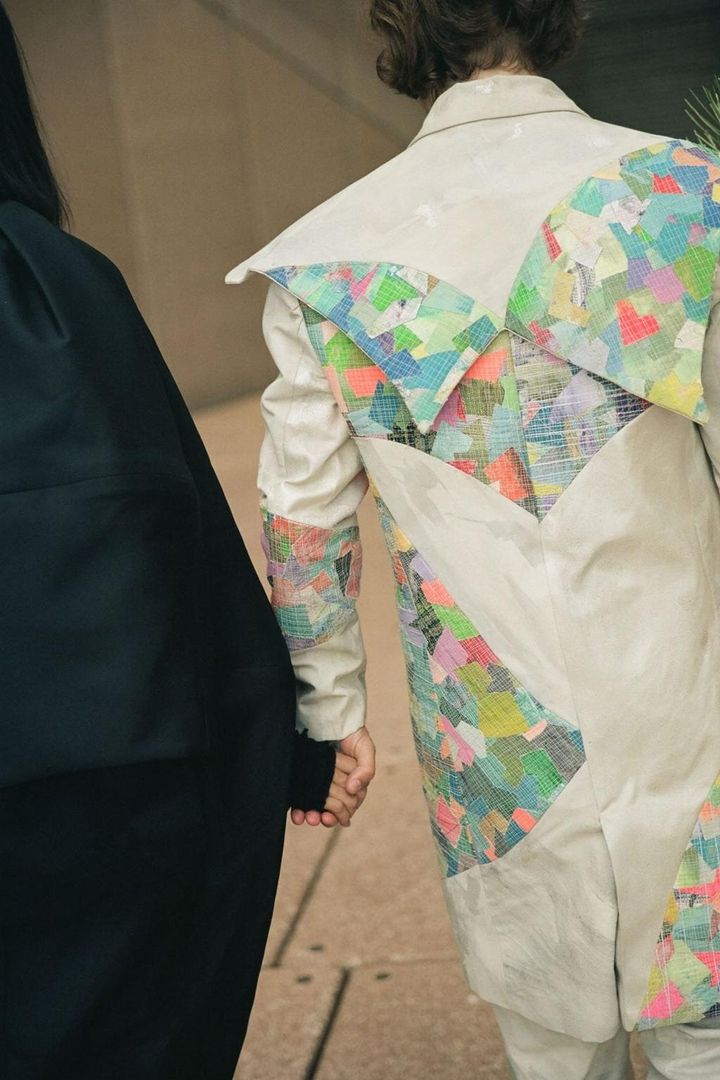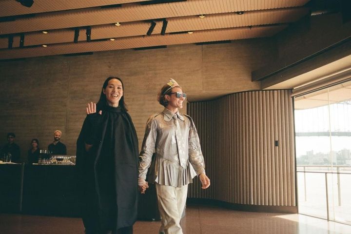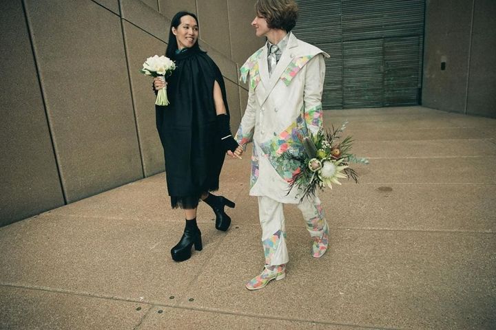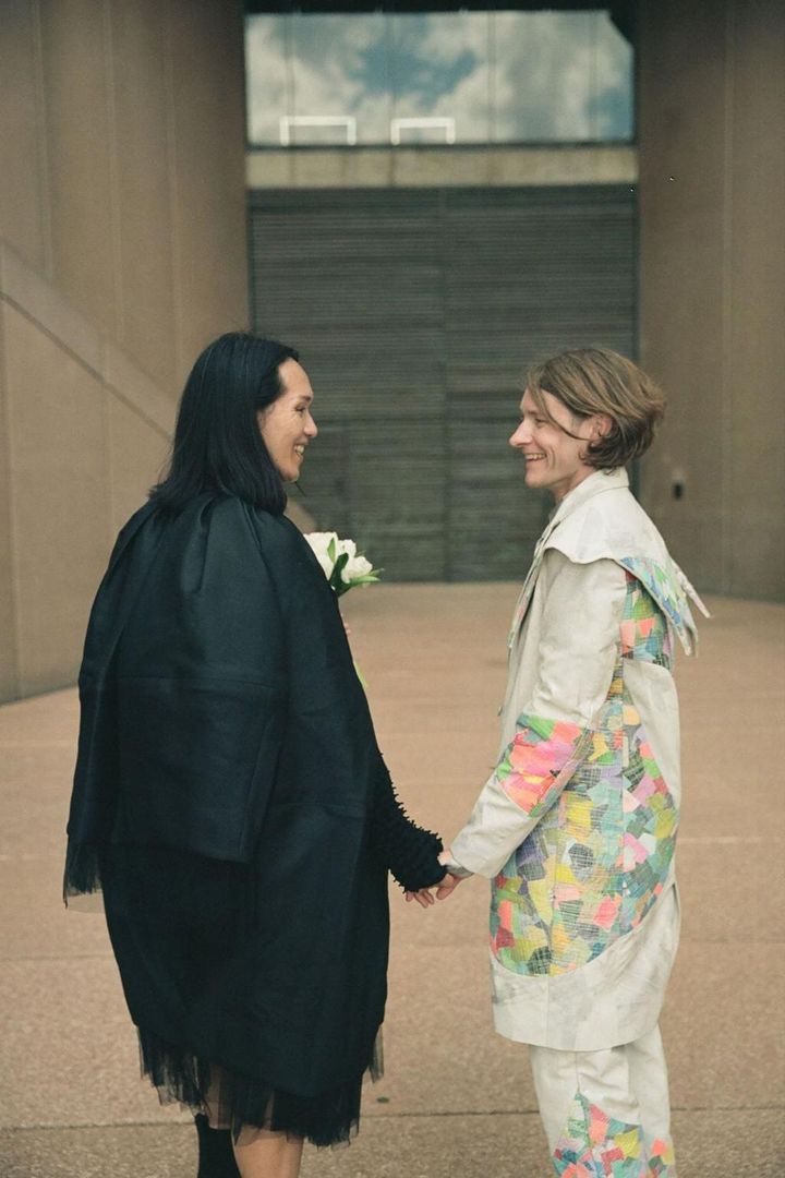 ロスとパートナーの加藤壮が、シドニーのアイコニックなオペラハウスで小さな結婚式を挙げたのはつい2カ月前のこと。だが、ロスが当日着用したカラフルで立体的なカスタムスーツの制作は、そのずっと前から始まっていた。そして当初から、オペラハウスをオマージュしたデザインにする予定だったという。