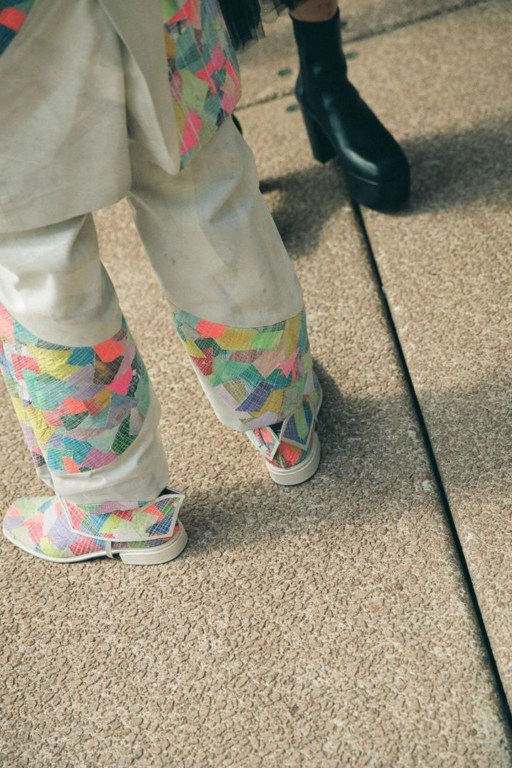 コーデの仕上げとなったのは、スーツとお揃いのシューズ。4年前からゴゴスとコラボレーションをしているフットウェアデザイナーのダレン・ビショフ(DARREN BISCHOFF)が手がけた1足だ。「ダレンのことはジョーダンが紹介してくれたんです。最初の打ち合わせをセッティングして、使う生地も提供してくれたんですが、あとはすべて僕とダレンに任せてくれました」と言うロス。「ダレンはオペラハウスの形そのものをブーツに落とし込もうと試行錯誤したんですが、構造的に無理だったので、スパッツにするというアイデアが出てきたんです。スパッツにすれば、スーツ以外の服に合わせて、ディナーパーティーなどでも履ける華やかな1足に仕上がるので」とロスは続けた。ビショフはこの日のために、ほかにもアクセサリーを制作。ロスがアフターパーティーで身につけたオペラハウスをかたどったティアラも、ビショフによるものだ。