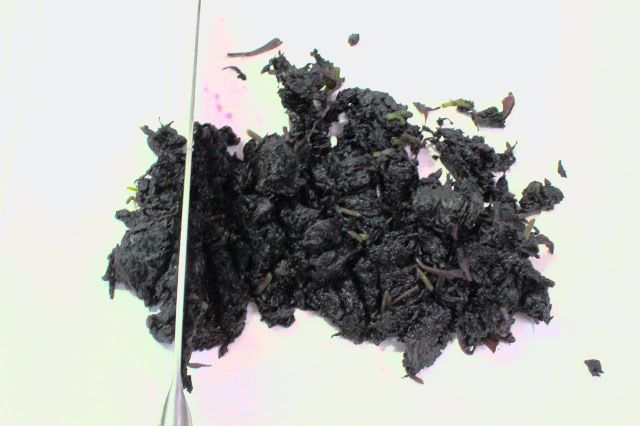酢を加えると、黒っぽい赤じそが発色するそうです。