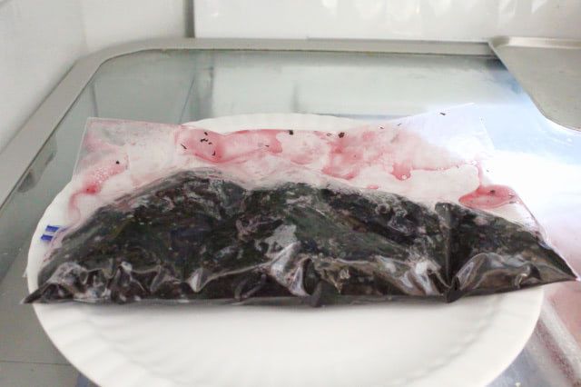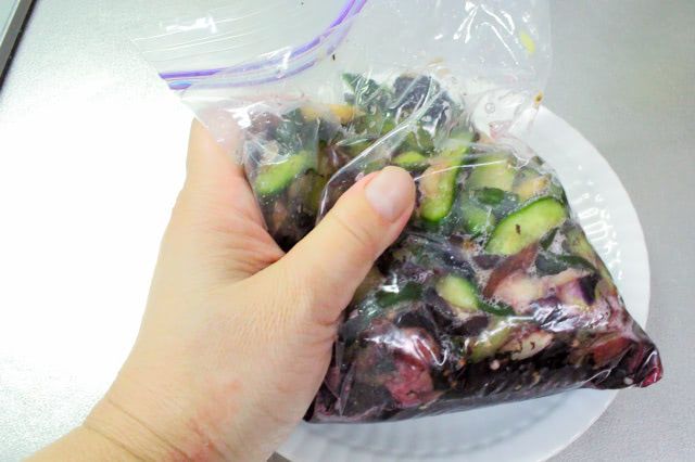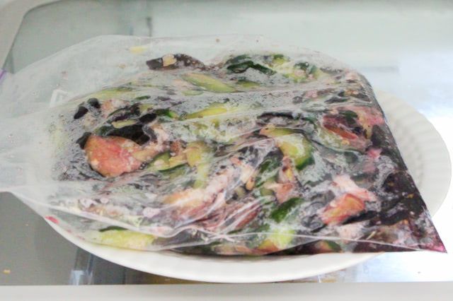 10. 空気を抜いて袋の口を閉じ、冷蔵庫で半日漬けます。