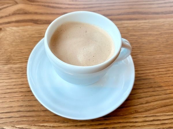 一緒に「カフェインレスカフェオレ」(500円)も。雨の日の憂鬱な気分をほぐしてくれるような、甘くてホッとする優しい味です。