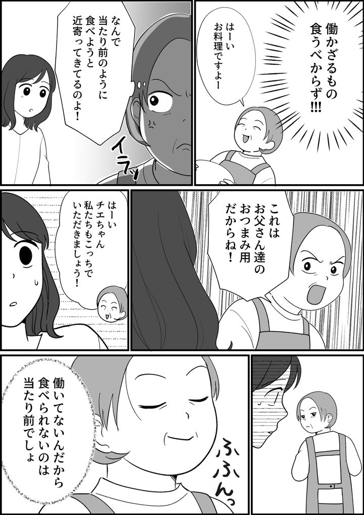 普通は「手伝います!」と言って、仕事を探しに来るのが嫁ってもんでしょ!!! 私は一度断られただけで戻っていくマユさんに、腹が立って仕方ありませんでした。どうやらチエちゃんは、私の気持ちを分かってくれているようで、それもまた嬉しくて。