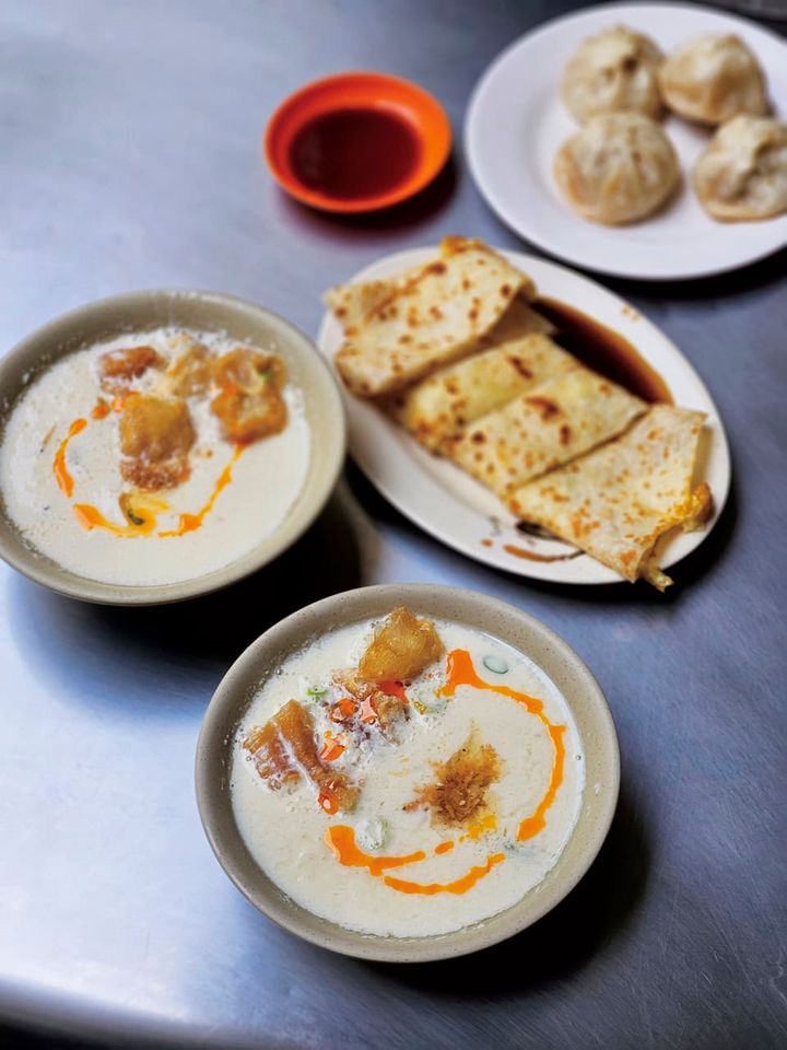 ひと口食べ進めるたびに美味しさにハマる「鹹豆漿」 30元。中華クレープ「蛋餅」 25元もセットでぜひ。