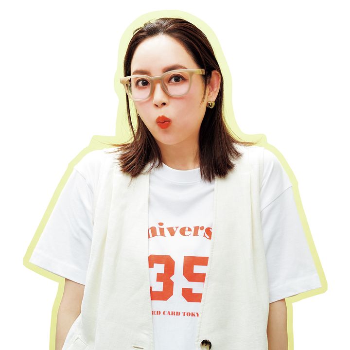 近くを見るときにぼやける方に。ブルーライトを約33%カットしてくれるのも嬉しいポイント。フレーム¥9,900レンズ¥3,300(ともにゾフ/ゾフ カスタマーサポート)