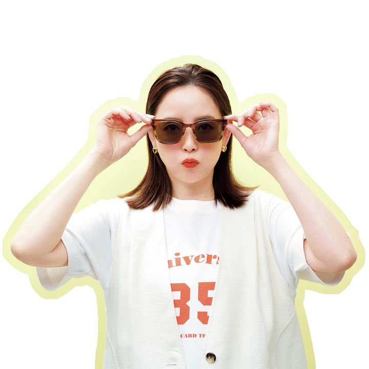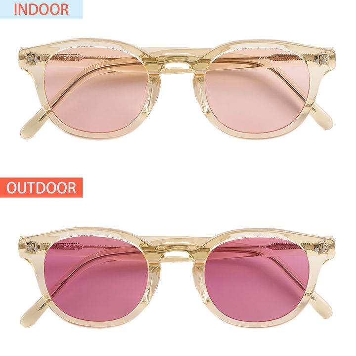 紫外線の量でレンズの色の濃度が変化。室内ではメガネ、屋外ではサングラスとして活躍します。フレーム¥6,600レンズ¥8,800(ともにゾフ/ゾフ カスタマーサポート)