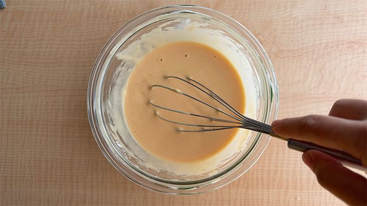 1. ボウルに[A]を入れて泡立て器でよく混ぜ、[B]も入れて混ぜる。
