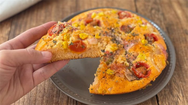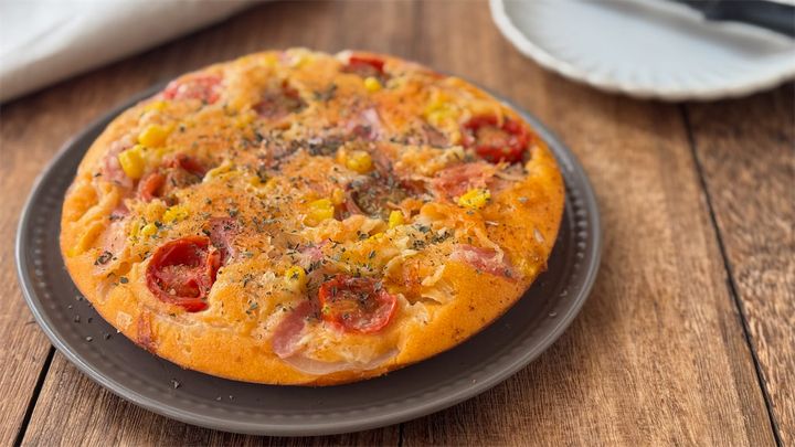 こんにちは!元パティシエで現在は2児の母をしている室崎さゆりです。今回は、朝食やランチに困ったらぜひ作ってほしい、発酵もこねる手間も一切なしで作れる米粉のピザパン風レシピを紹介します!ケチャップ味の生地に好きな具材をたっぷりのせたら、フライパンでじっくり焼くだけ。彩り鮮やかでふっかふかのピザパンは、ボリュームもあって大満足な一品ですよ♪