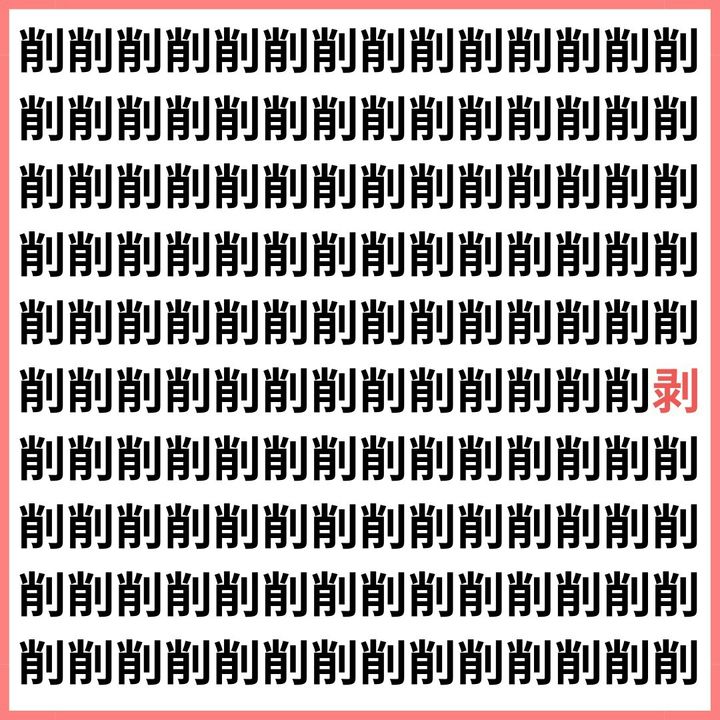 たくさんの「削」の中に、1文字だけ違う漢字が混ざっています。