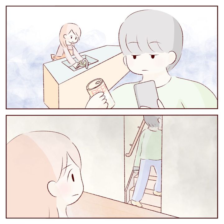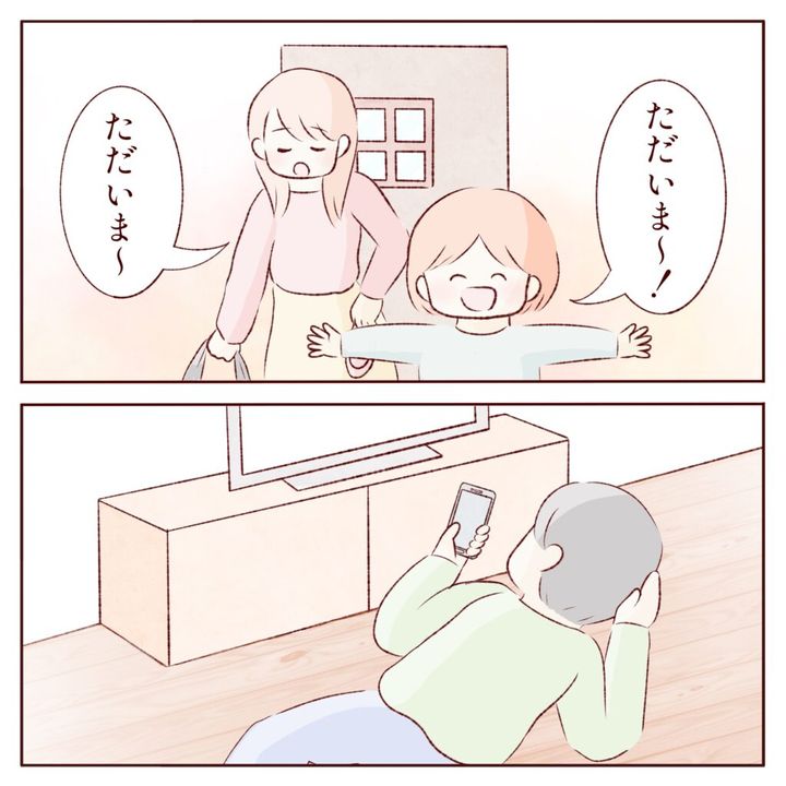 「ただいま~!」「ただいま~」と言うツバサと私。リビングで寝っ転がってスマホを見ている夫からは、何も返ってきませんでした。