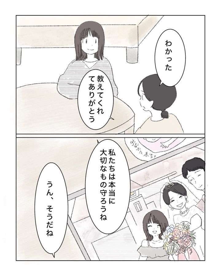 サツキにそう言われ、「わかった。教えてくれてありがとう」と話した私たちは、「本当に大切なもの守ろうね」「うん、そうだね」と2人で意見を交わしたのでした。