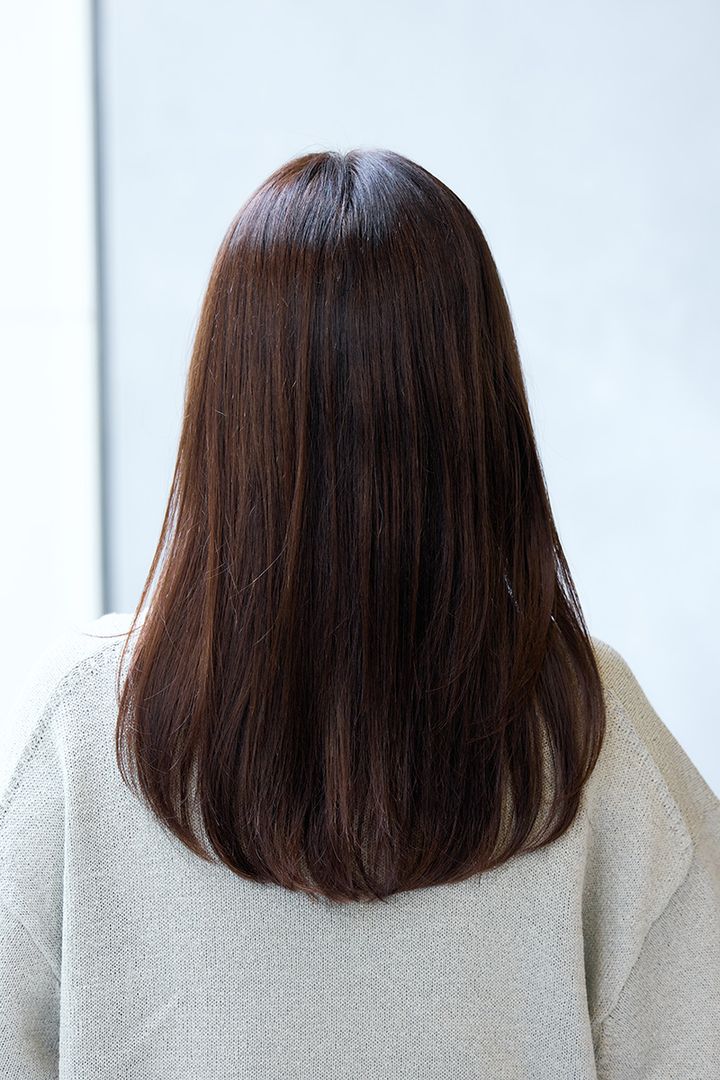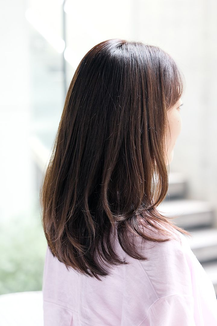 ・カラーはブラウンベースで、透明感あるヘアが完成。