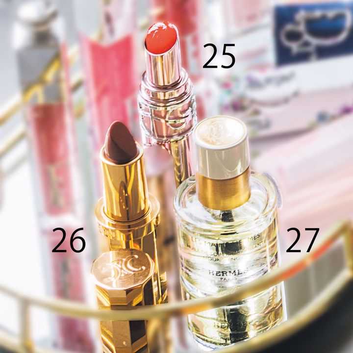 25保湿のレベルがスゴイ! ほのかに色づくYSL ラブシャイン キャンディ グロウ バーム 9B。26他にはない気品が漂う。大人の唇になるセリーヌ ル ルージュ・セリーヌ。 27指先まで保湿。100%天然オイルのエルメス レ・マン・エルメス ネイル&キューティクルオイル。