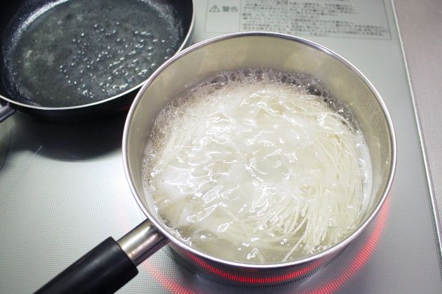 フライパンを熱すると同時にお湯を沸かしておくと、スムーズに作れますよ。