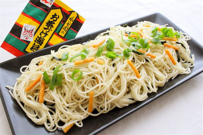 リュウジさんの虚無レシピ「お茶漬け焼きそうめん」。お茶漬けを作る時に重宝するお茶漬けの素を、そうめんの調味料として使うアイデアレシピでした。