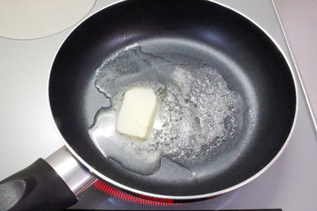 1. フライパンにバターとサラダ油を入れ、中火で熱し、バターを溶かしておきます。