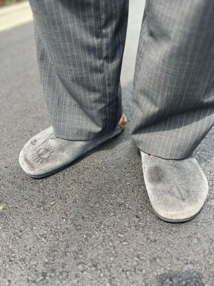 ビルケンシュトックのボストンは、なんと自分で落書きしたそう。「なんか楽しいことしたいなと思って、最初は左足から書いていって失敗。右足はちゃんと書こうと、SNSなどでよく見かけるメイク前とメイク後を表現してみました。これは成功したので左足に戻ったら、また失敗して中途半端な状態に(笑)。梅雨にはトゥマッチなシューズかもしれませんが、かなりはき込んでいるので雨の日もガンガンはいちゃいます。逆にもっと味が出て、さらにイイ感じになるかもしれませんしね! 」