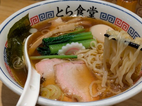 「とら食堂」は、福島県白河市に本店を構える創業昭和44年の、「白河ラーメン」発祥のお店と言われているラーメン店。白河市で先代の竹井寅次さんがお店をおこし、その味を引き継ぐ弟子たちが白河市に構えるお店は相当数だそうです。(詳しい歴史は、メニュー表に記載されていますよ。) 「とら食堂 福岡分店」の代表取締役は、2016年から同じ場所にあった福岡で有名なラーメン店の社員でした。そのお店の閉店を機にこちらを買い取り、白河の味を福岡でお披露目したら、瞬く間に人気店になったのです! 同じく福島県では喜多方ラーメンも有名ですが、白河ラーメンも含めて、仙台出身の私は福島のラーメンが大好きでした♪
