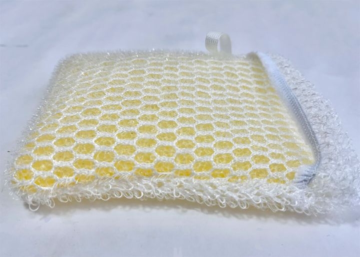 裏面はブラシ繊維になっていて、頑固な汚れもしっかりこすり洗いできますよ。