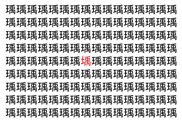 【脳トレ】「瑀」の中に紛れて1つ違う文字がある!?あなたは何秒で探し出せるかな??【違う文字を探せ!】
