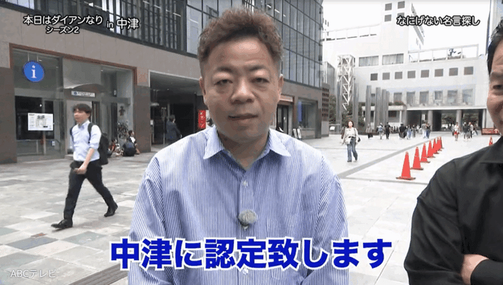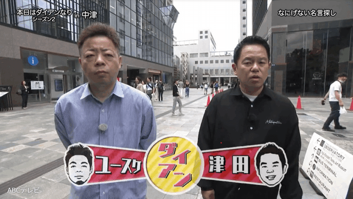 なぜ中津なのに梅田スカイビルから?と疑問に思う視聴者に対し、ユースケは「阪急中津駅から徒歩9分、阪急梅田駅から徒歩11分」と説明した上で、「梅田スカイビルを中津に認定致します」と宣言。津田も「東京ディズニーランドが千葉にあるのに東京とつくようなもんか」と視聴者の疑問を取り払ってから番組をスタートする。