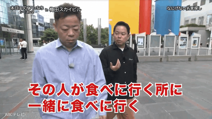 サラリーマンと別れたらすぐさま津田が「そんなロケいいかもな」と昼食に行くビジネスパーソンと話してその人と一緒のところに食べに行くランチ企画を思いつく。ただユースケは「そんなん何回もできへんやん。腹パンパンになるやん」と冷静に却下。