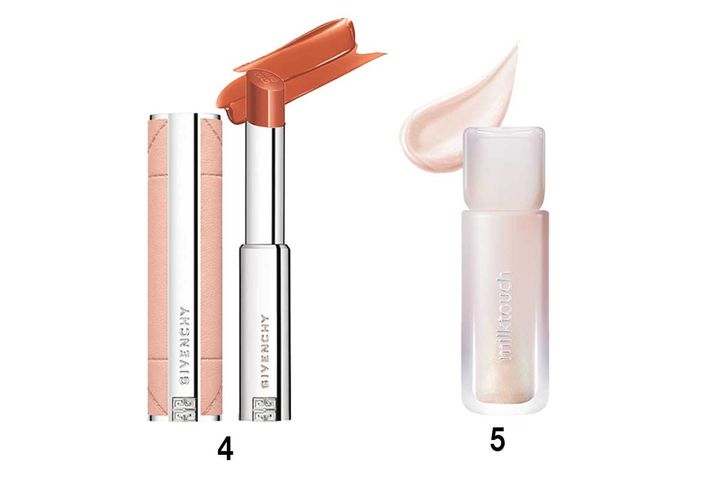 4ジバンシイ ローズ・パーフェクト・シャイン No.302 ¥5,060/パルファム ジバンシイ 5 ミルクタッチ デューステインシアーオーロラグロス 01 ¥1,980/Coogee