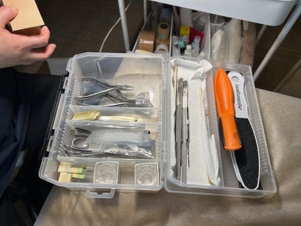 フットケアリスト、木曽さんの道具。施術ごとに取り替えます。