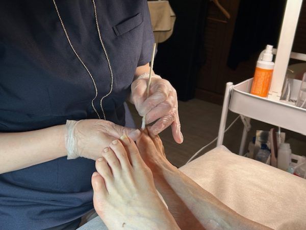 まず、親指が巻き爪の友人から。友人は爪が巻かないようにかなり長めに切っているのですが、今回適切な切り方で切ってもらって様子見です。