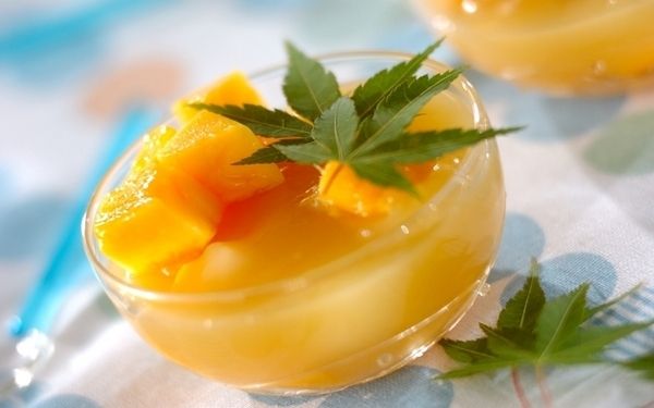 芳醇な香りと濃厚な甘みが特徴のマンゴーを水ようかんに加える、斬新なアイデアレシピです。マンゴーピューレは火にかけず、風味を最大限に活かすのがコツ。まるで洋菓子のような味わいで、ハンバーグやステーキなど洋食のデザートにも◎です。