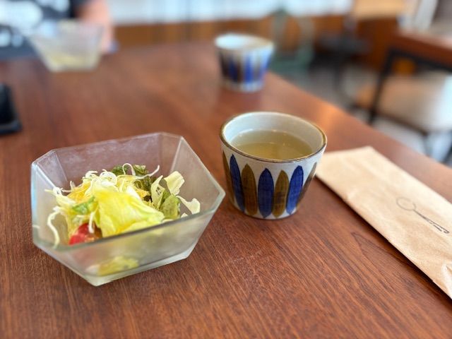 プレートに美しく盛られたカレーは、サラダとスープがついていて1000円とコスパ最高☆見た目からして満足度◎。スパイスの効いたカレーは、辛さ控えめながら深みのある味わいで、スプーンが止まらなくなります。