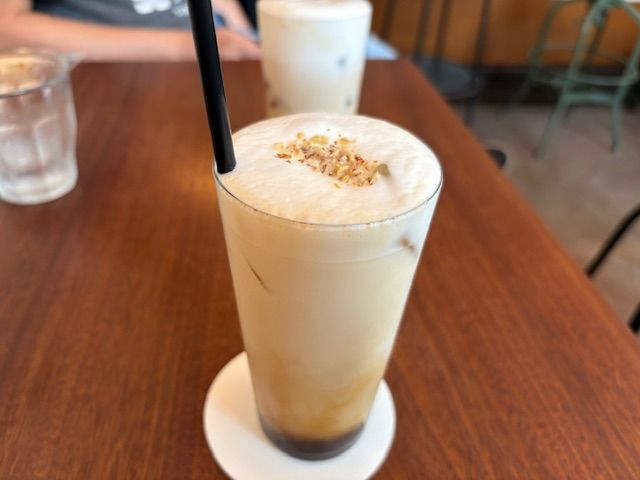 一口飲むと、ナッツの香ばしさとカフェラテのまろやかさが絶妙にマッチ。甘さ控えめで、氷で冷やされていながらも、口当たりはとってもなめらか。スパイスの余韻をゆるやかに包み込んでくれて、最高の〆ドリンクでした。