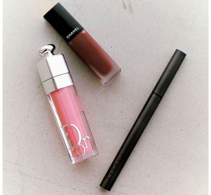 右_アイラインはTHREE。中_シャネルのルージュ アリュール リクィッド ヴェルヴェットは好きな小豆色系のカラーです。