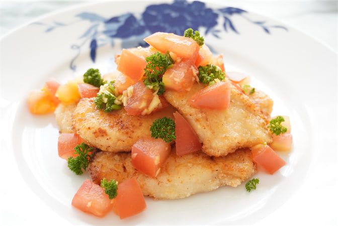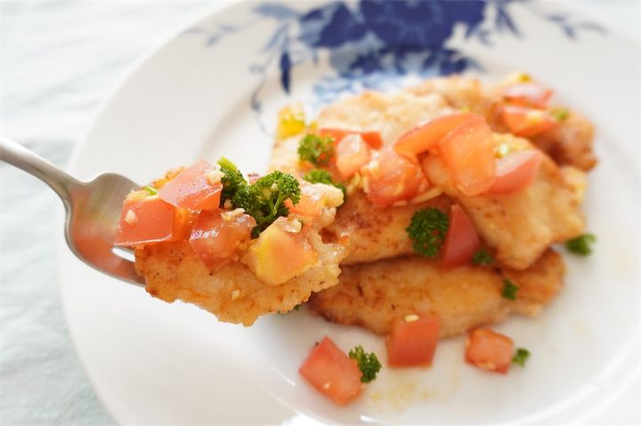 から揚げとトマト酢ソースも相性抜群。トマトの旨味と酸味、パセリのさわやかな風味がイタリアンなお味で、しょうがのピリッとした辛味も効いて、大人好みの味わいです。