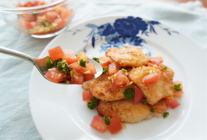 鶏むね肉を使った「から揚げ~トマト酢ソース~」は、いつものから揚げをさっぱりといただけます。