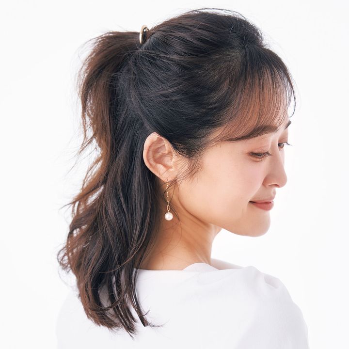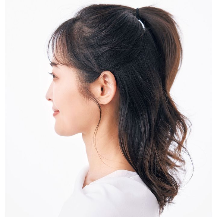 上向きの毛流れで高く結ぶと髪全体にボリュームが出る