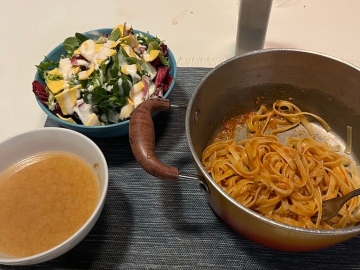 出会った日の夕食。多く作りすぎたのでお裾分けをした。