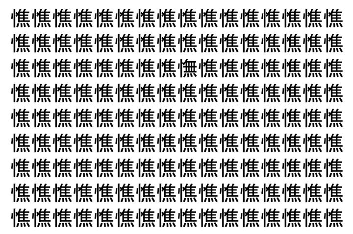 【脳トレ】「憔」の中に紛れて1つ違う文字がある!?あなたは何秒で探し出せるかな??【違う文字を探せ!】