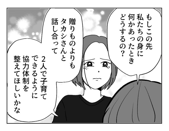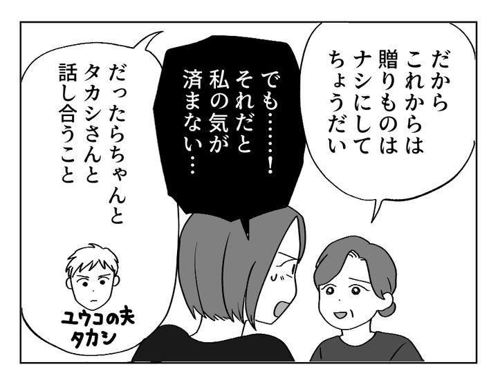 最後にお義母さんは本当の核心を突いてくれましたね。今回の件の根本原因は、ユウコさんが仕事をしながらワンオペで家事も子育ても背負っていることなのではないでしょうか。そのしわ寄せが義両親へ向かい、申し訳ないという後ろめたさからユウコさんは高額な贈りものをするようになったのでしょう。そして「きょうだいだから」という謎の主張のもと、その半額をアキラさんに支払ってもらっていたのです。ユウコさんが義両親を頼らなくても仕事・家事・子育てを両立できる状況であれば、高額な贈りものをしていなかったのではないでしょうか。