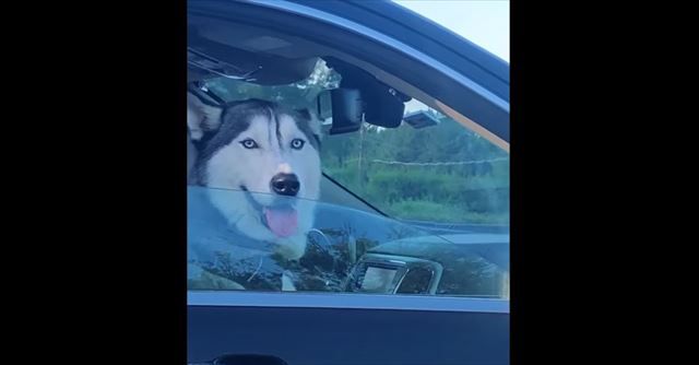 【ハスキーが可愛い】信号待ちで隣の車にいたハスキーと交信するハスキー!ハスキー同士の静かなシンクロに笑っちゃう!