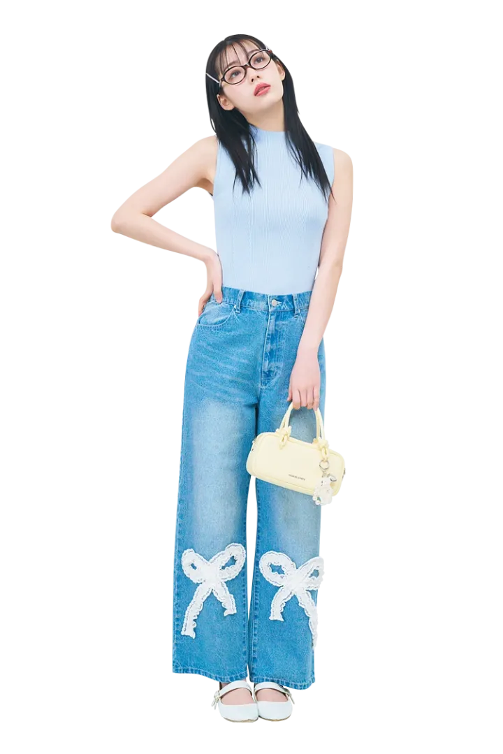 男子の大好物・デニムパンツは欠かせない!ベースはシンプルだけど、大きなリボンのあしらいで気分が上がる、頼れる1本。