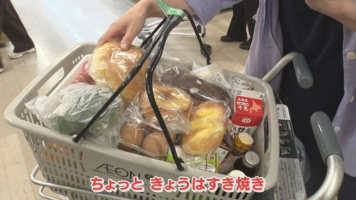番組スタッフ:「今日のごはんは何を買われましたか?」美緒さん:「ちょっと今日はすき焼き。そして朝ごはんのパンと、朝飲む牛乳を買っていました」