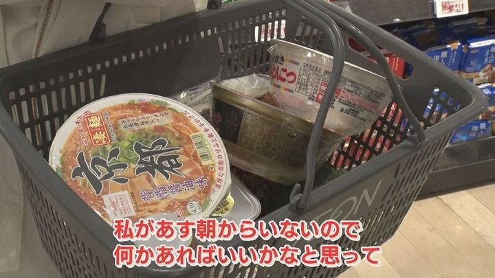番組スタッフ:「今日はどんな買い物でしょうか?」即子さん:「今日?今日はごはん支度してきたので。土日になるから、家を空けてもいいように、カップラーメンを買っただけです。私が明日朝からいないので、何かあればいいかなと思って」