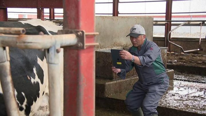 飼育する約620頭の乳牛の体調管理に使っているのはタブレット。
