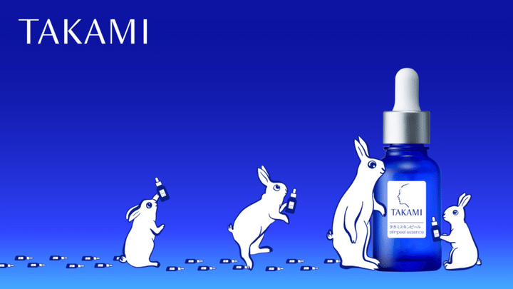 ウサギが成長する様子と「タカミスキンピール」の歩みを重ねたデザインに注目
