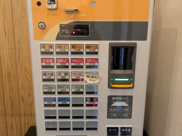 店名にもあるように、味噌らーめんのお店です。注文は券売機ですよ。基本の2種類のラーメンに、たまごやチャーシューの増量、その両方というラインナップです。