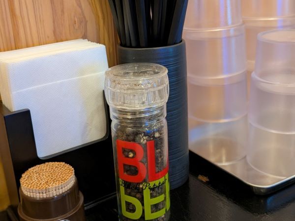 「とら食堂」の味変は、白胡椒と刻み玉ねぎでしたが、こちらは「ブラックペッパー」。ちょっと洋な感じもして、濃厚なスープにピリッとしたスパイスが合うんです!